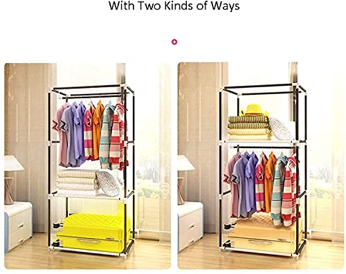 Portable Closets Cloth WardrobePortable Wardrobe Cloth Wardrobe Wardrobe Bedroom Folding Simple Simple Dormitory Fabric Small Single Assembled Cloth 160X45X70Cm,Brown Portable Cloth Hanger-160X45X70cm