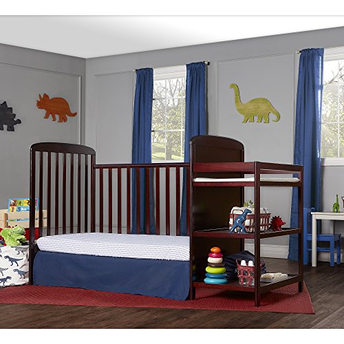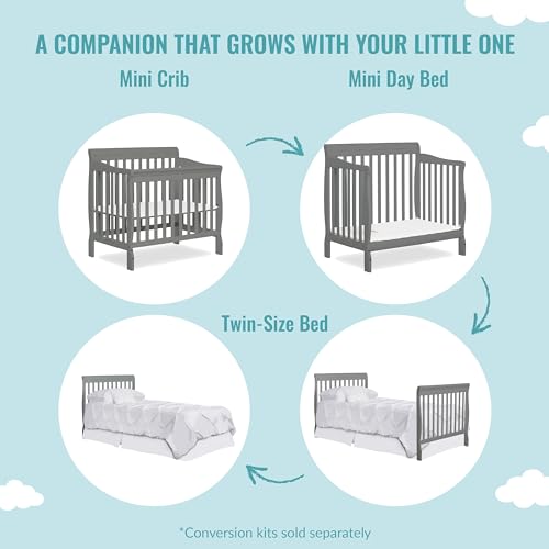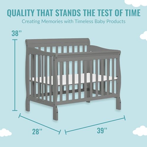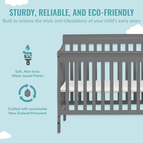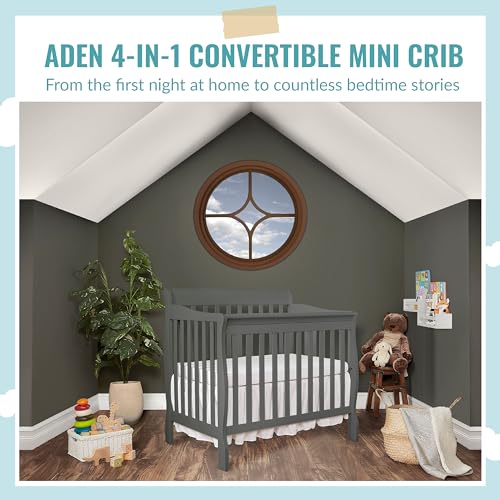 Aden 4-in-1 Convertible Mini Crib in Black, Greenguard Gold Certified, Non-Toxic Finish & Sunset 3” Extra Firm Fiber Crib Mattress, Greenguard Gold Certified