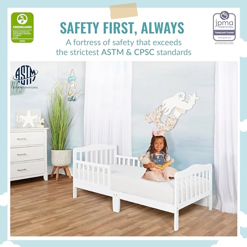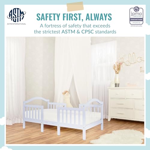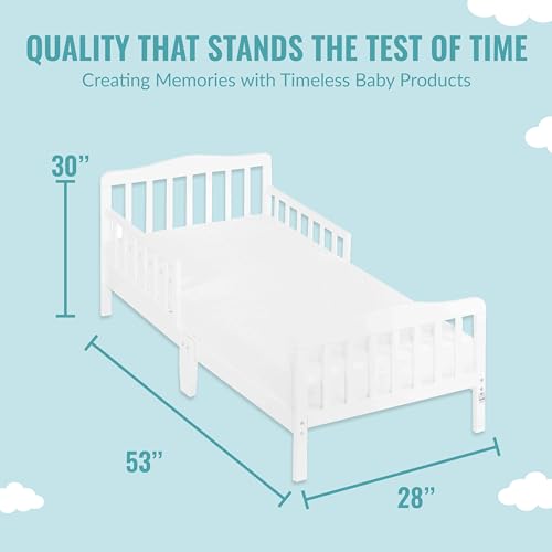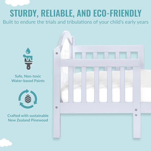 Toddler Bed, Mattress & Bedding Bundle - Classic Design Toddler Bed in White, Twilight 5" 88 Coil Mattress