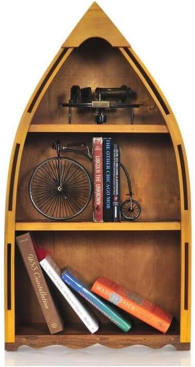 Contemporary Chic Wooden Canoe Book Shelf is Eco-friendly and Handcrafted from Canadian Cedar and Hardwood and includes Ample Space, 18.5 x 7 x 34.3 Inch