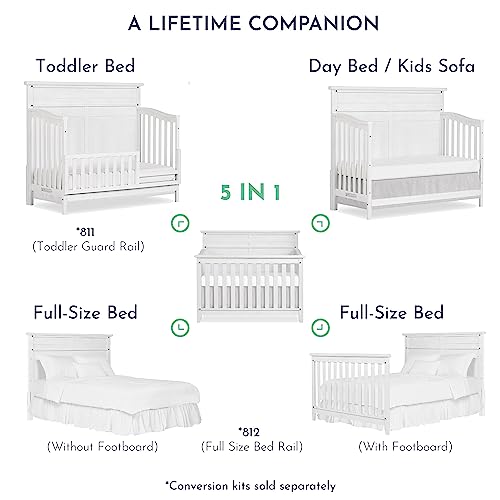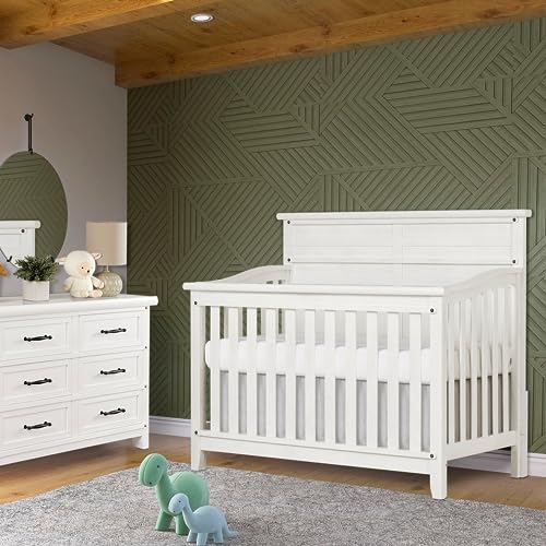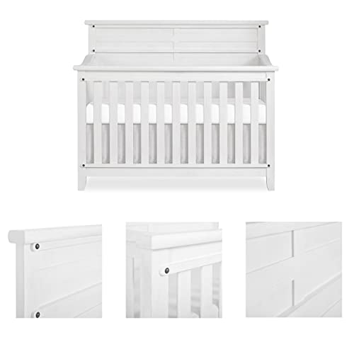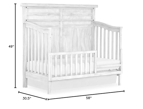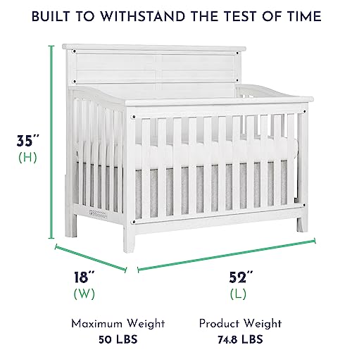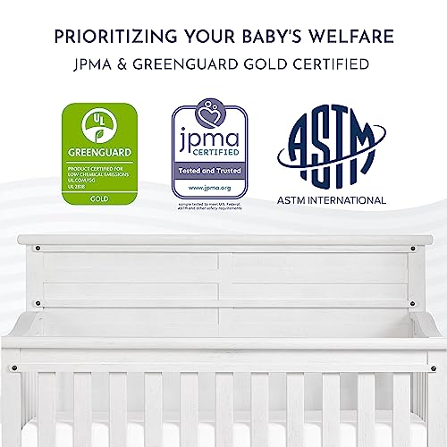Evolur Andorra 5-in-1 Convertible Crib in Weathered White, Greenguard Gold and JPMA Certified, Made of Hardwood, Easy to Assemble, Wooden Nursery Furniture