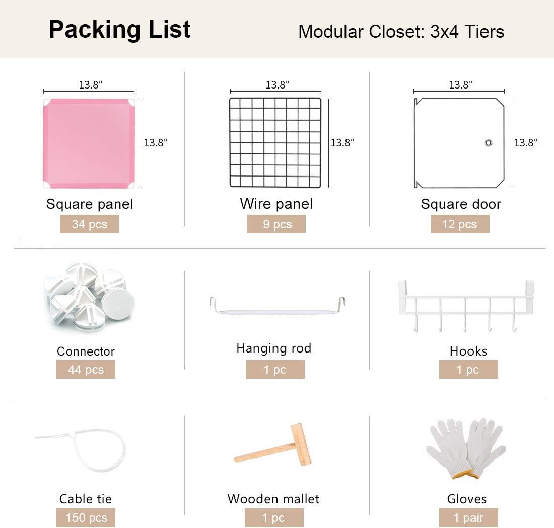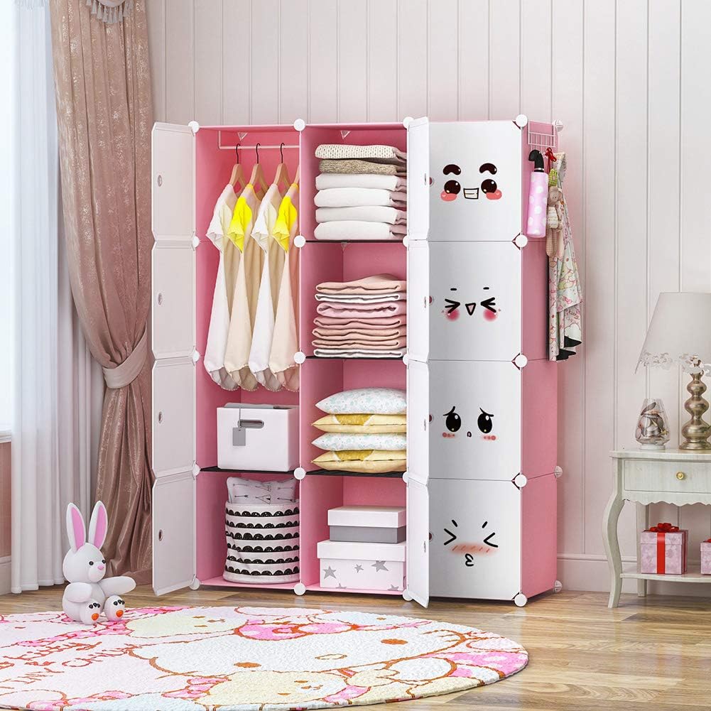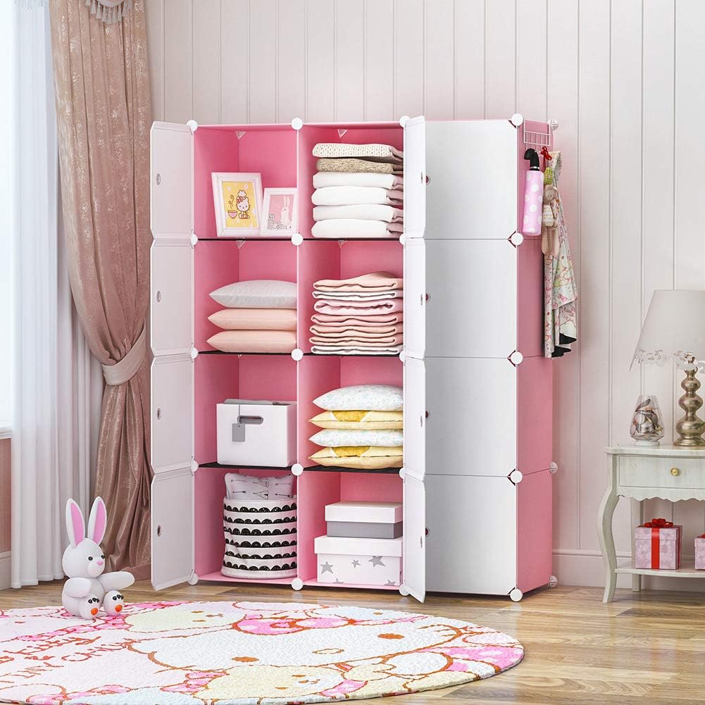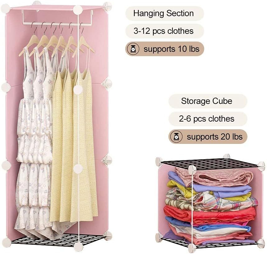 YOZO Cube Storage Organzier Portable Closet Wardrobe Bedroom Dresser (42x14x56 inches) Portable Closet Cube Shelf Armoire Pantry Cabinet, 12 Cubes, Pink