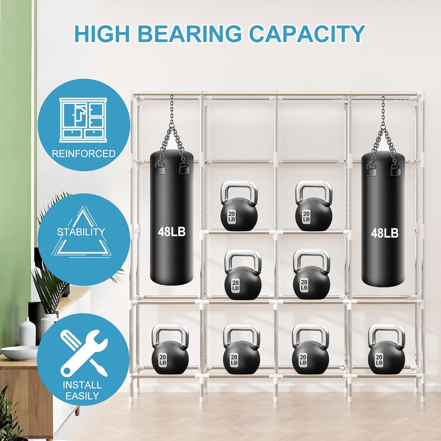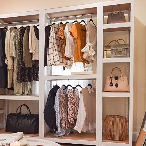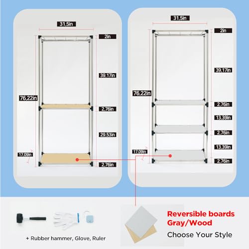 KEPSUUL White Double Rail Clothes Rack Heavy Duty Wardrobe Garment Shelf Customizable Modular Tall Metal Shelving and Storage with Meshboard for Bedroom, Closet, Mudroom 32.1" W X 16.4" D X 76.9" H