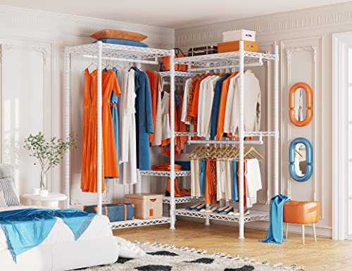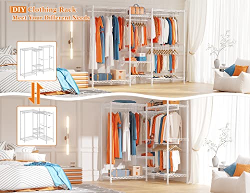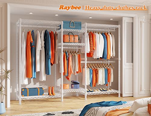 Raybee Clothes Rack 725LBS Clothing Rack Heavy Duty Clothing Racks for Hanging Clothes 77" H Portable Closet Rack Metal Wire Garment Rack Adjustable Wardrobe Closet Rack,77" H x 70.5" W x13.8 D,White