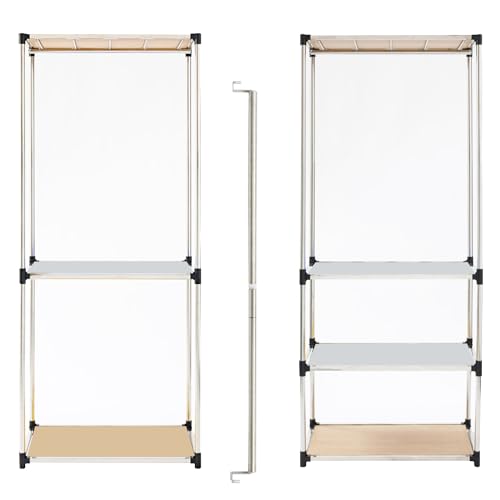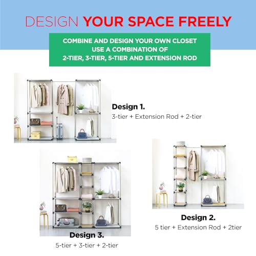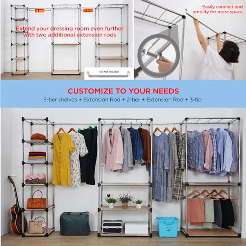 Premium Stainless Steel Freestanding Closet Organizer System - Easy Assembly, Durable, and Versatile - Heavy Duty Adjustable Portable Wardrobe Clothing Rack (2 Tier)