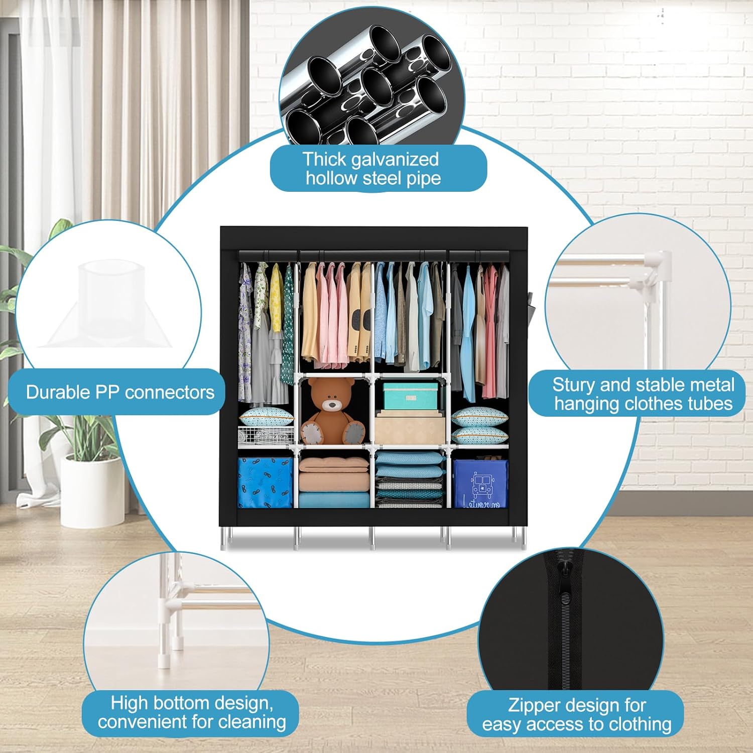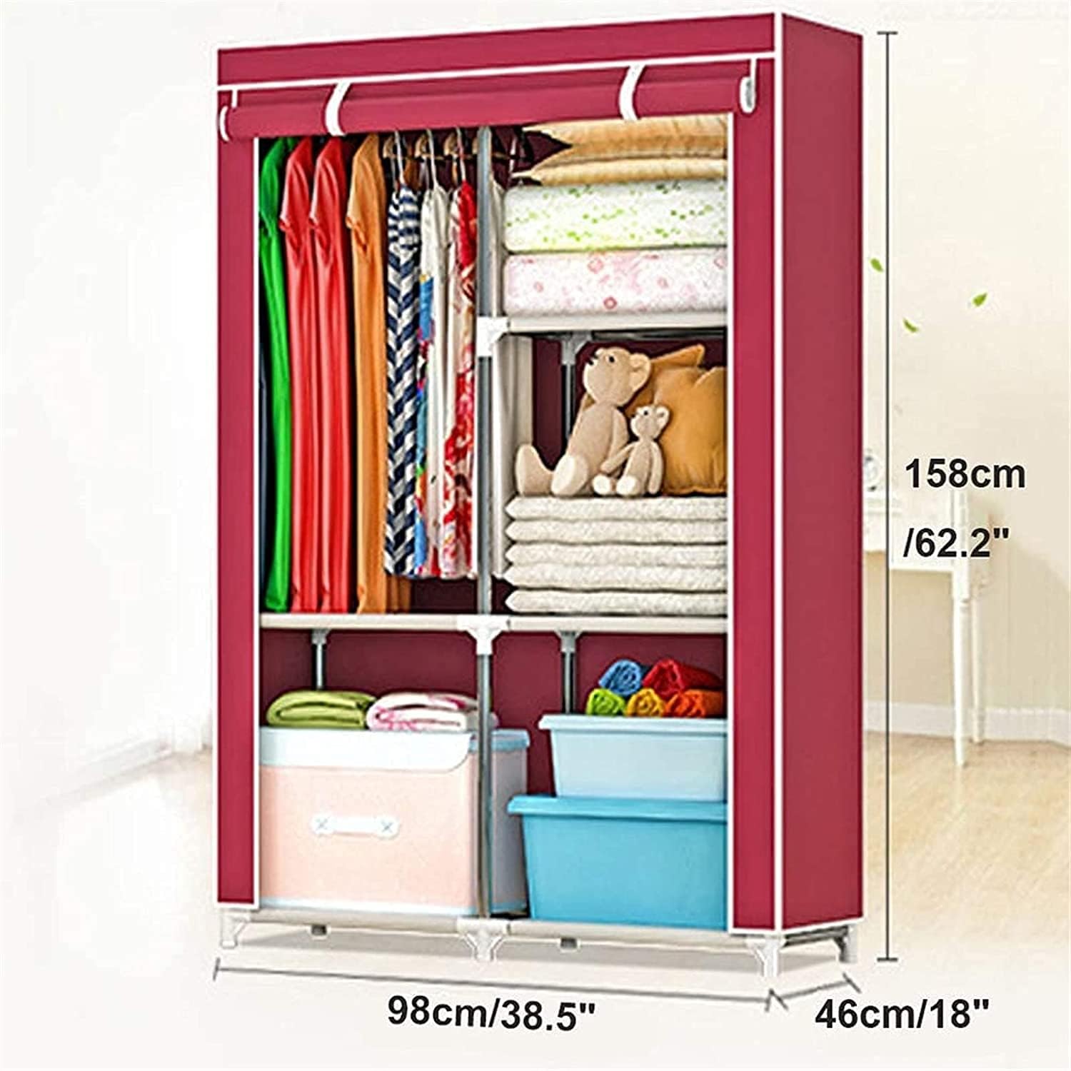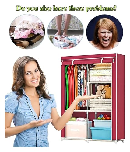 Portable Closets Portable Wardrobe Cloth Wardrobe Wardrobe Bedroom Small Thickened Bedroom Dormitory Household Single Clothes Storage Cabinet Rental Room Simple Fabric,B Portable Cloth Hanger