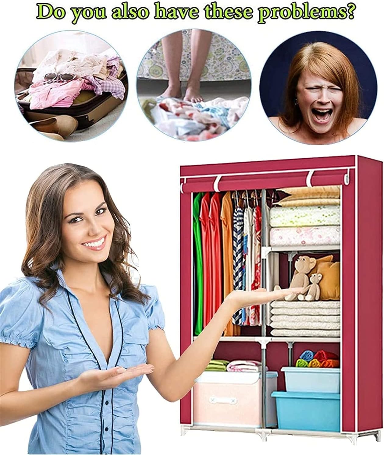 Portable Closets Portable Wardrobe Cloth Wardrobe Wardrobe Bedroom Small Thickened Bedroom Dormitory Household Single Clothes Storage Cabinet Rental Room Simple Fabric,B Portable Cloth Hanger -B(Chris