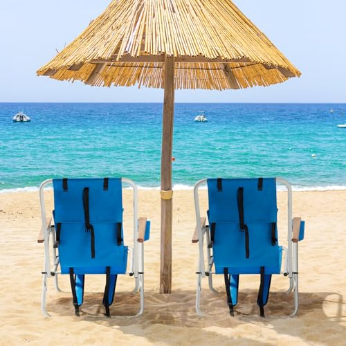 Backpack Beach Chairs for Adults 2 Pack w/Backrest Adjustment & Backpack Straps,Extra Wide & Comfortable Tall Beach Chairs w/Cup Holder,Portable Reclining Chairs for Beach,Camping,Travel