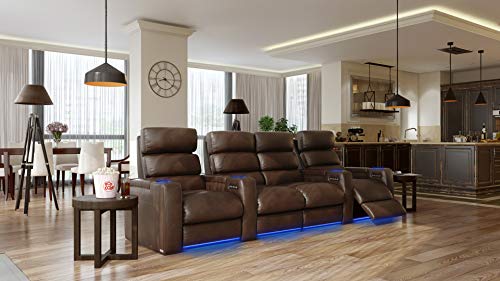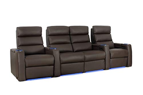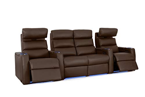 Octane Seating Dream HR Series Home Stadium Seating - Top Grain Leather - Power Recline - Motorized Headrest - Lighted Cup Holders (Row of 2, Black)