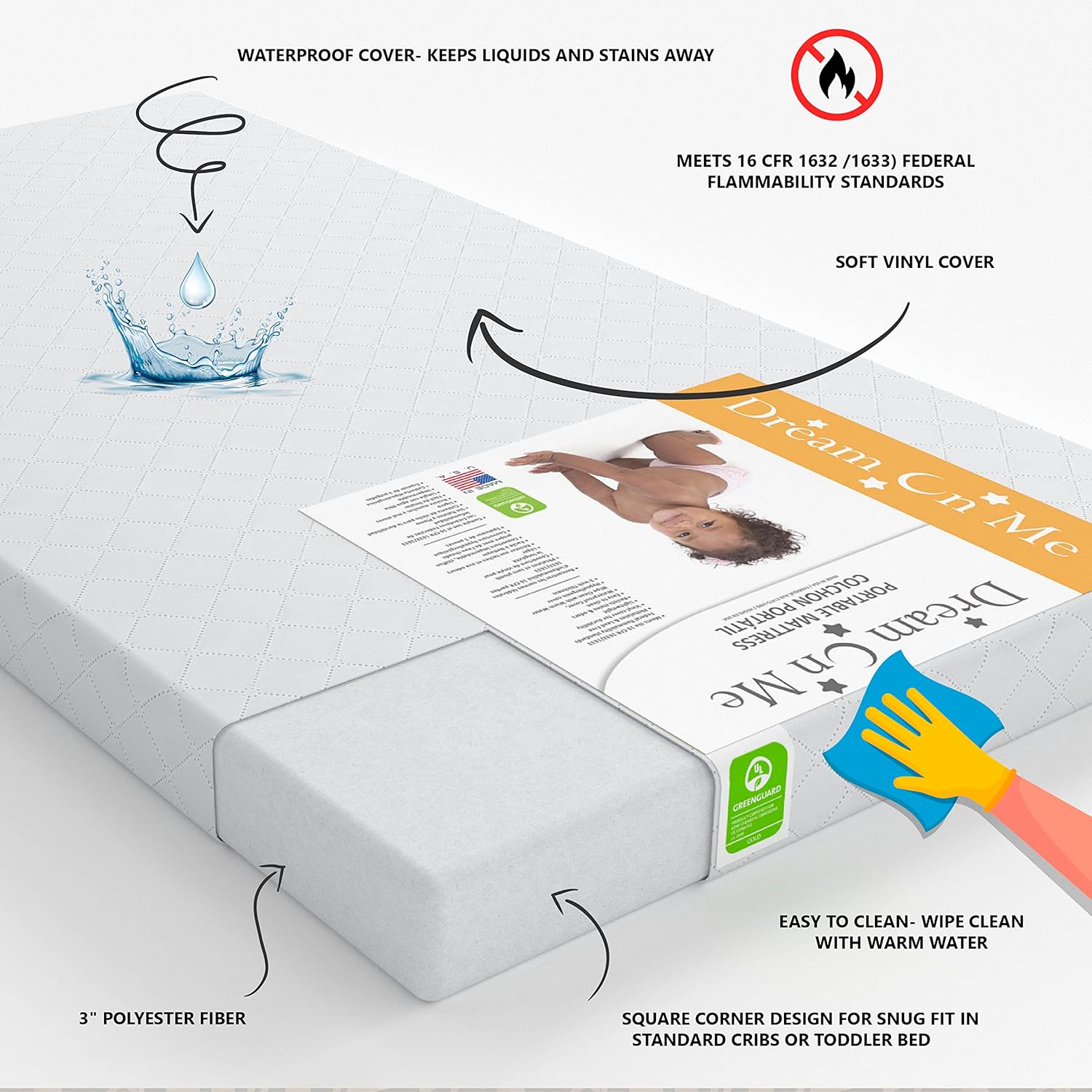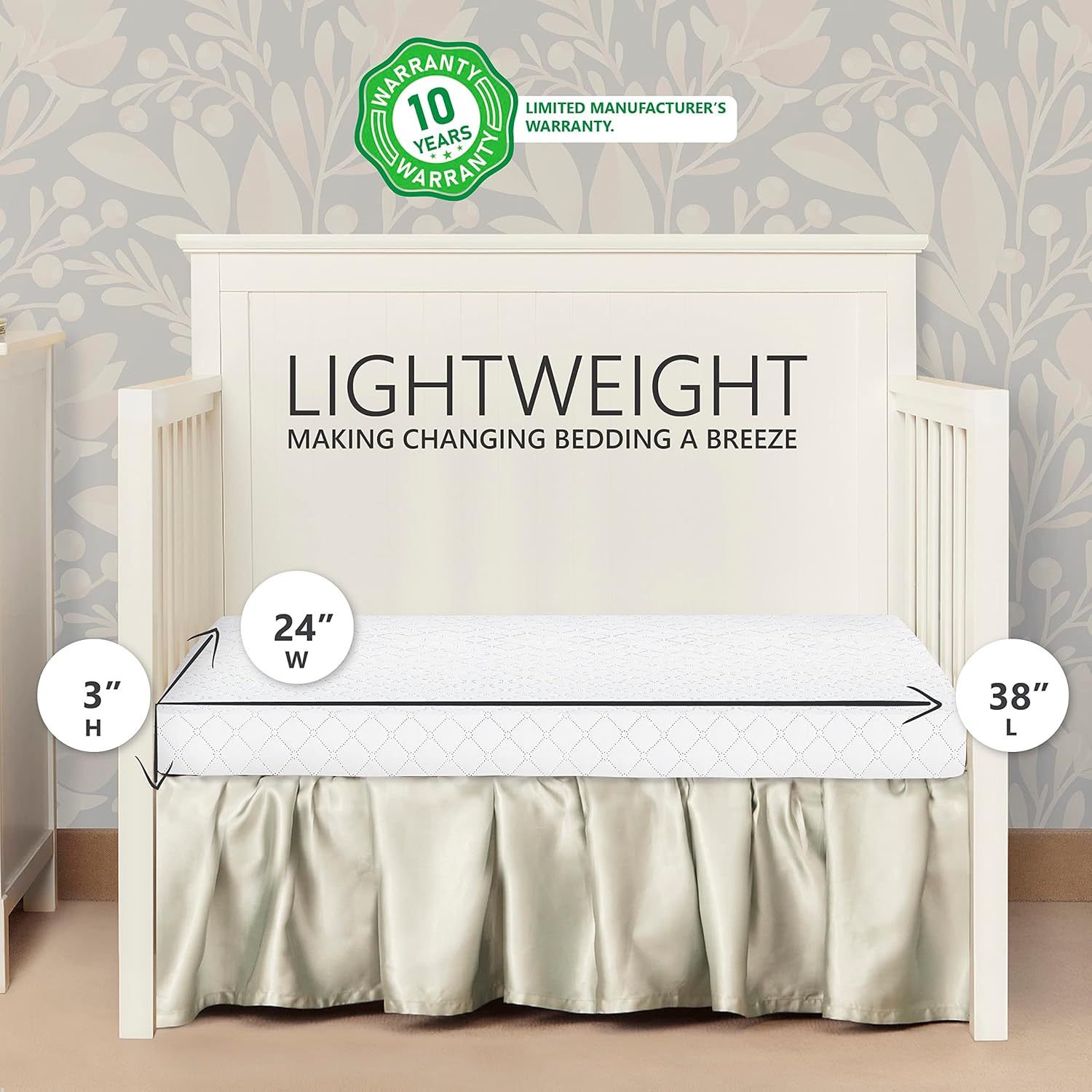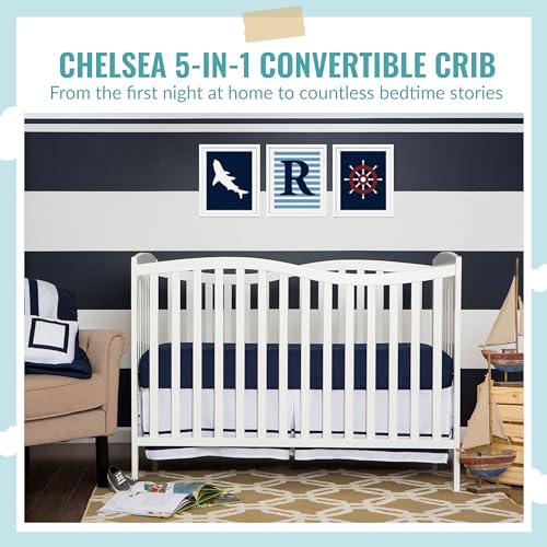 Chelsea 5-in-1 Convertible Crib in White, JPMA Certified & Honeycomb Orthopedic Firm Fiber Standard Baby Crib Mattress