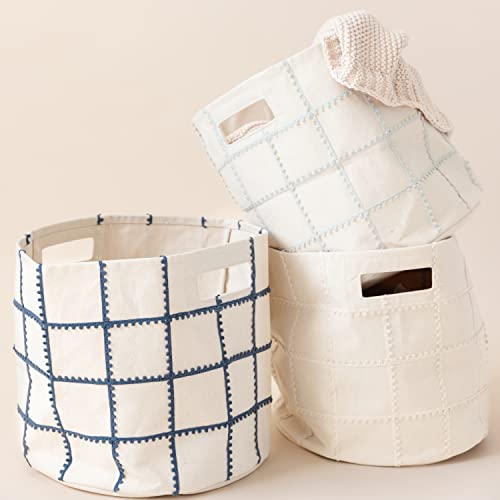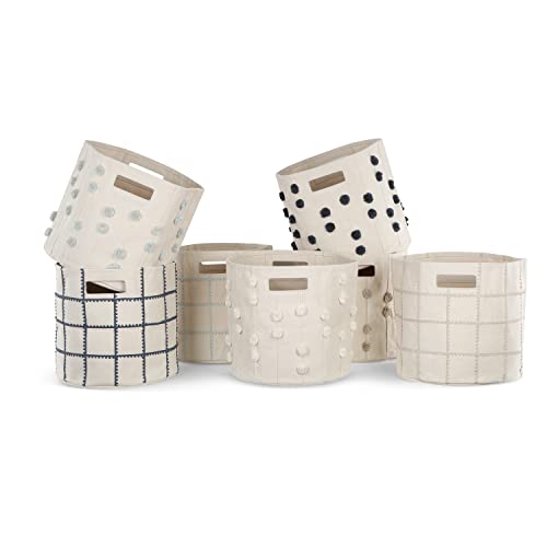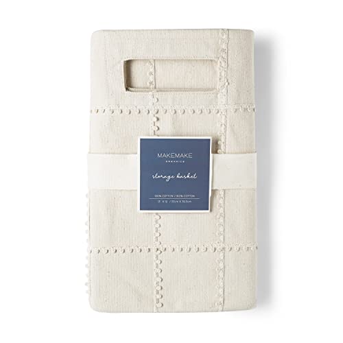 MakeMake Organics Storage Bins for Kids Nursery Bin Organizer (13"x12") Laundry Basket for Closet, Decorative Floor Storage Basket Canvas Fabric Storage Basket (Pompom - Natural)