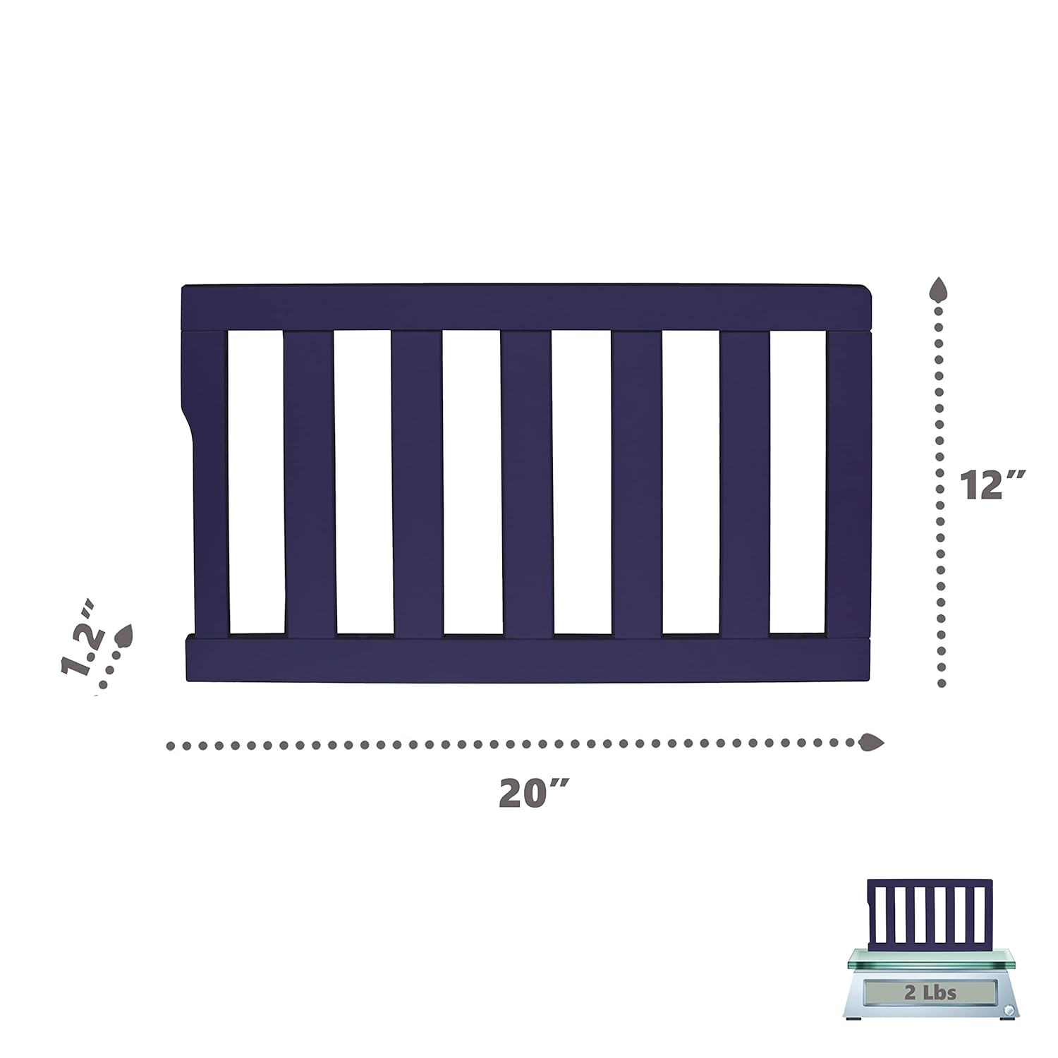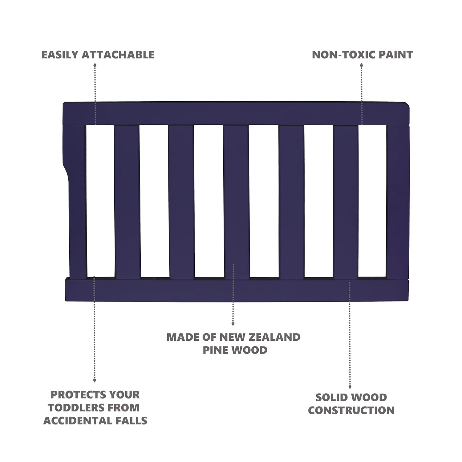 Convertible Crib Toddler Guard Rail In Navy, Converts Cribs To Toddler Beds, Solid Wood Construction