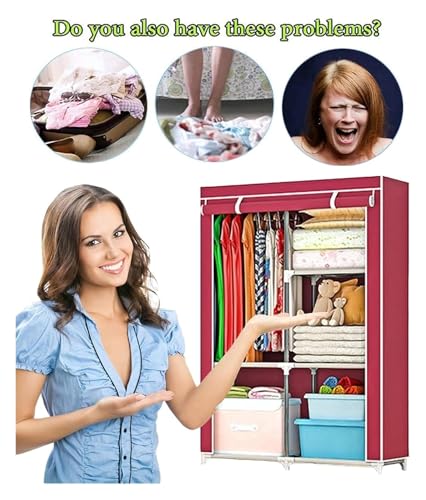 Portable Closets Portable Wardrobe Cloth Wardrobe Wardrobe Bedroom Small Thickened Bedroom Dormitory Household Single Clothes Storage Cabinet Rental Room Simple Fabric,D Portable Cloth Hanger -A-98X46