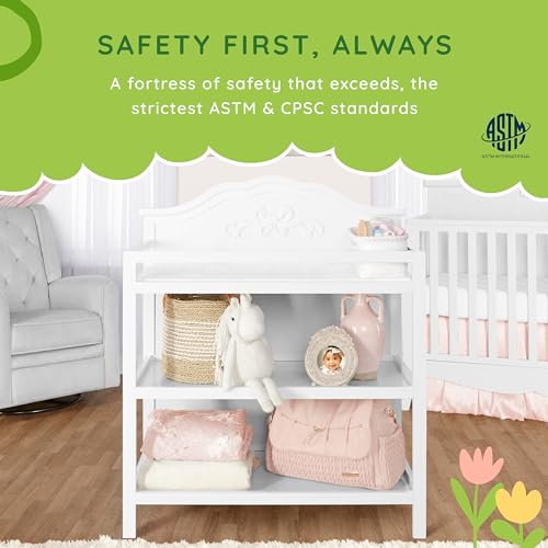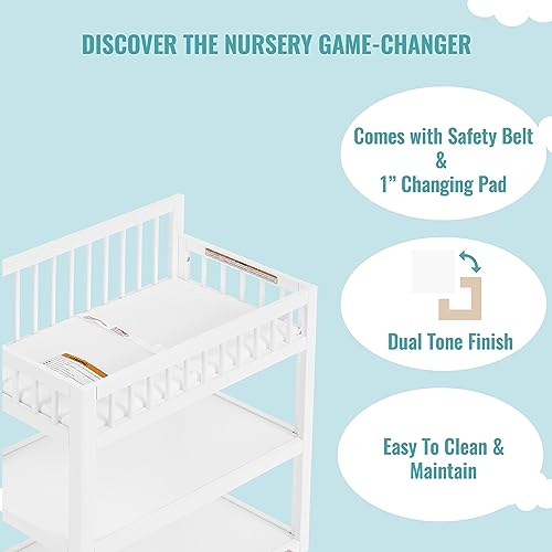 Hygge Changing Table in Pebble Grey Oak, Greenguard Gold & JPMA Certified, Comes with Safety Belts & 1” Changing Pad, Easy to Clean, Safe Wooden Furniture