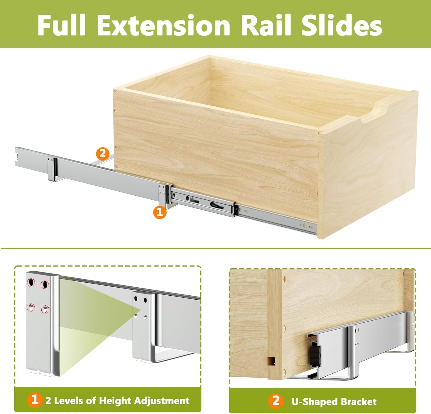 21”D x 8”H Slide Drawer Storage Kitchen Pantry Garage Bathroom Pull Out Cabinet Organizer, 13.5''W x21''D, Birch Wood