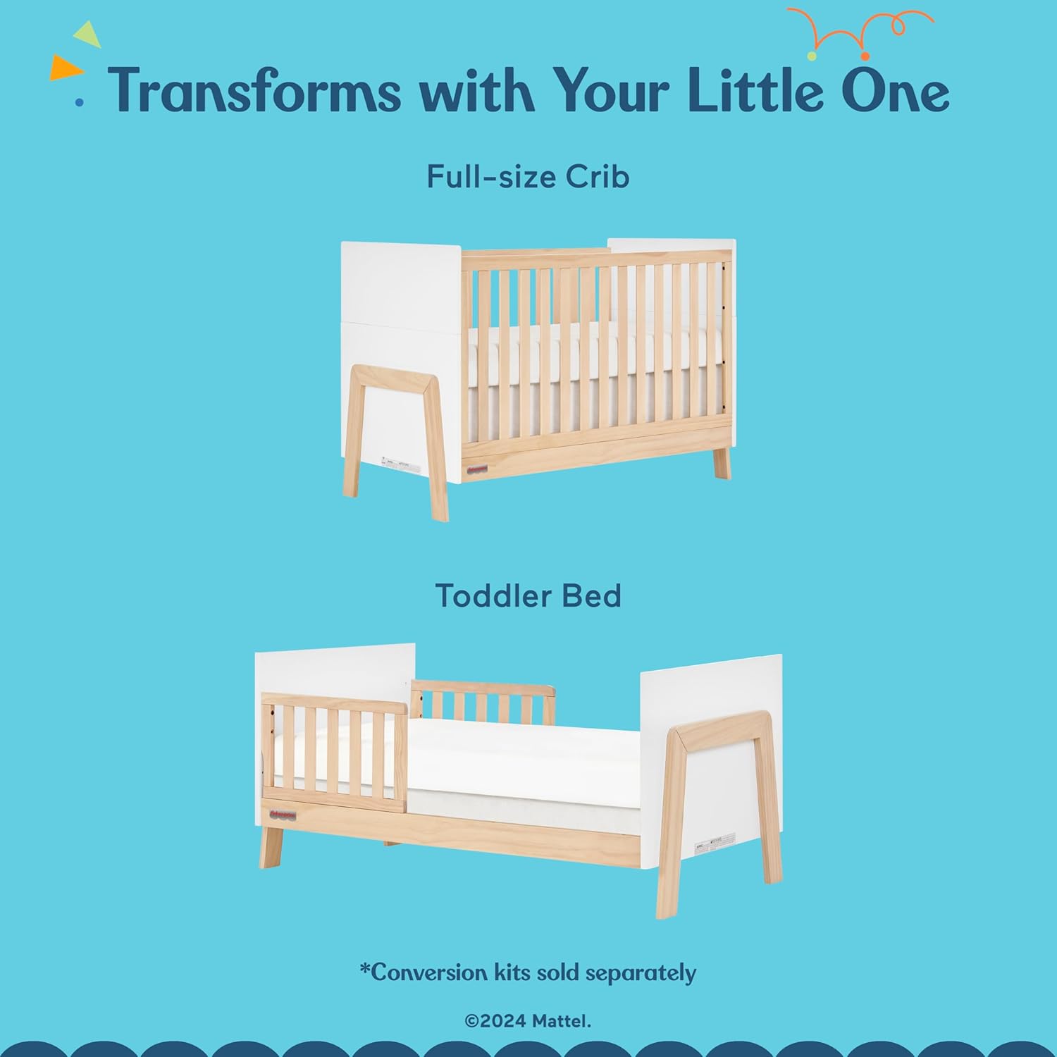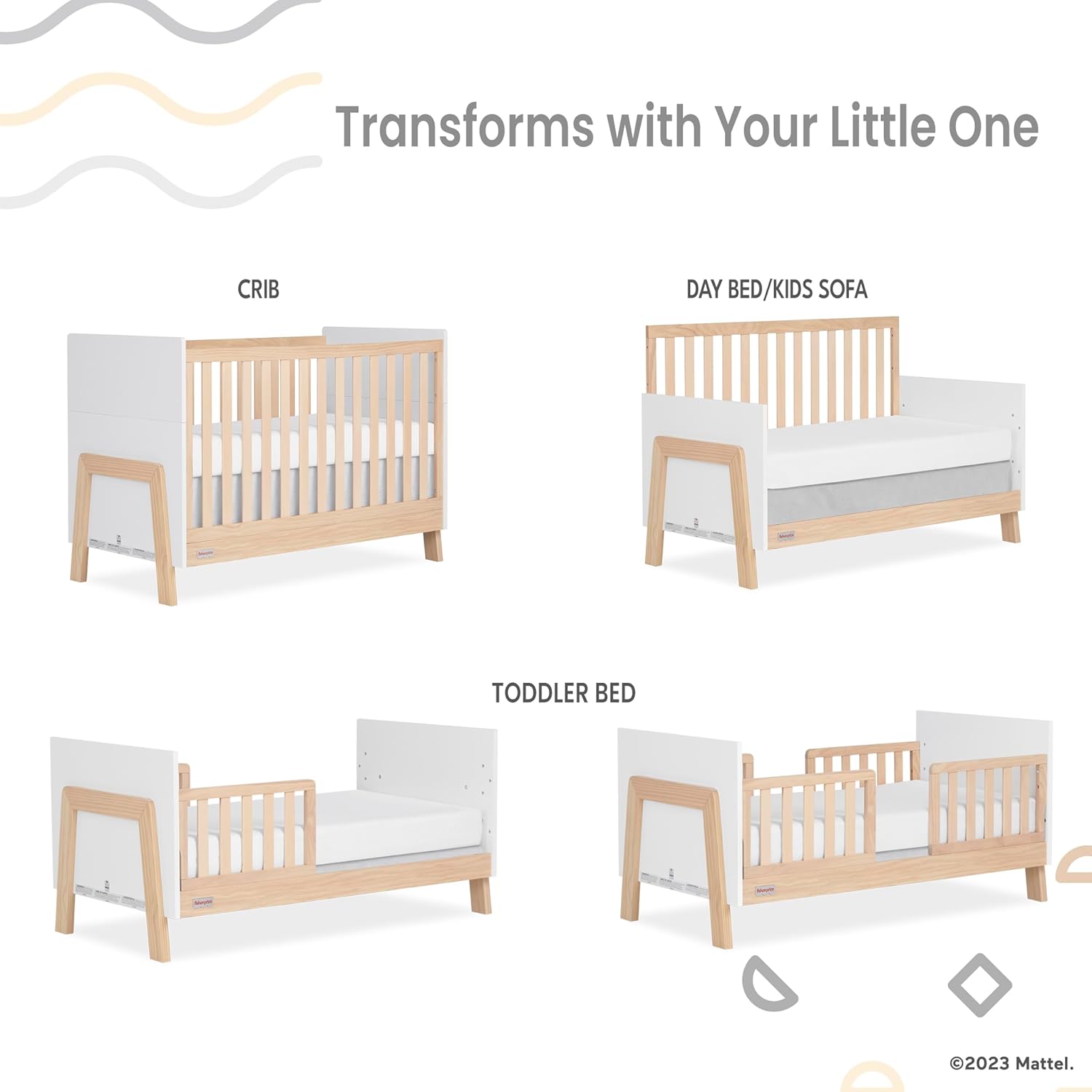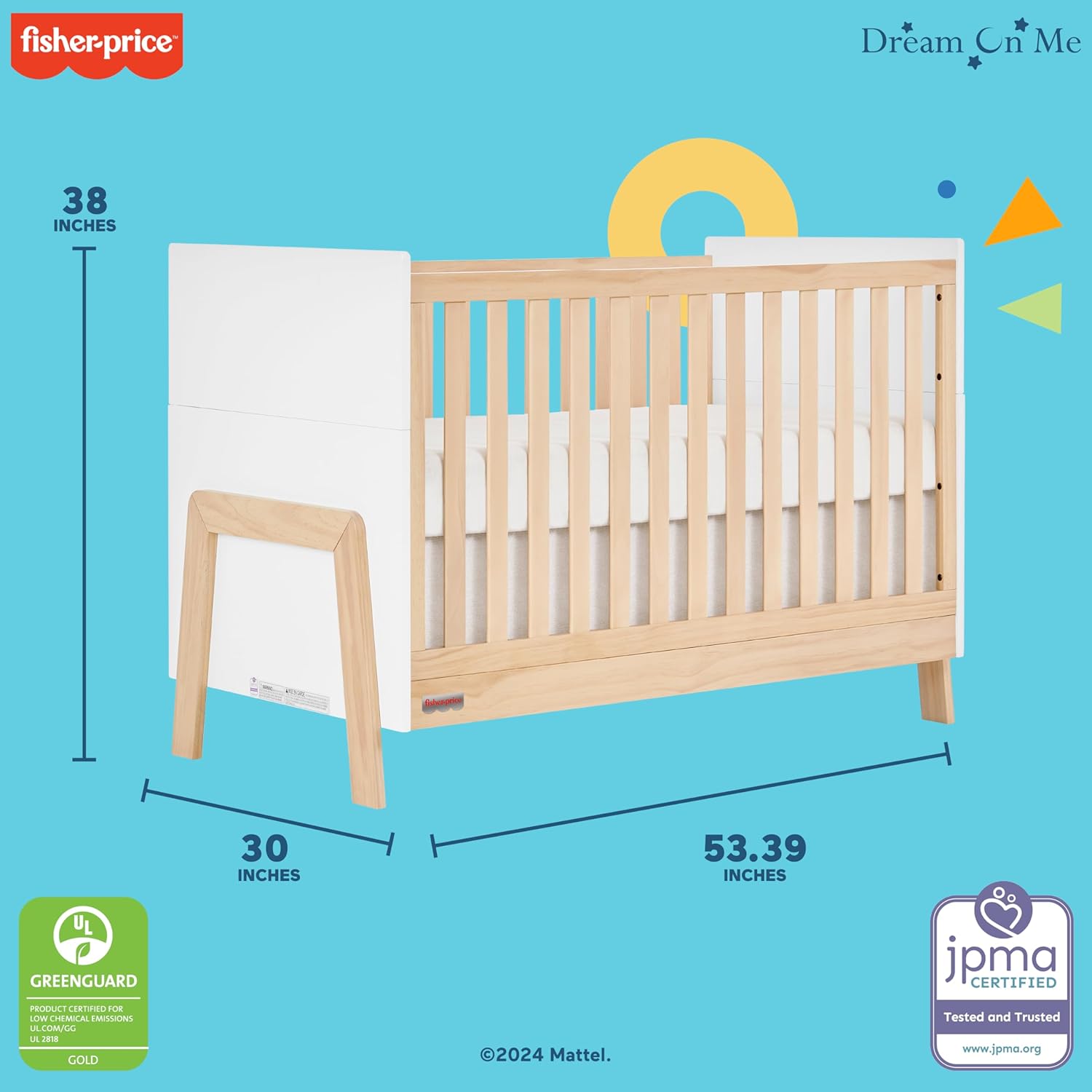 Evolur Fisher-Price Iris 4-in-1 Convertible Crib in Vintage White Oak by Dream On Me, JPMA & Greenguard Gold Certified, Crafted from New Zealand Pine Wood