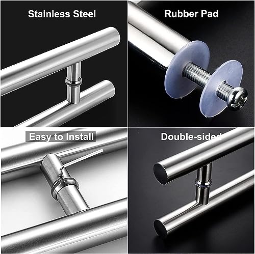 Sliding Barn Door Handle 24 Inch Shower Door Handle with Fittings,Stainless Steel H Shape Two-Sided Pull Handle for Company & Shopping Mall
