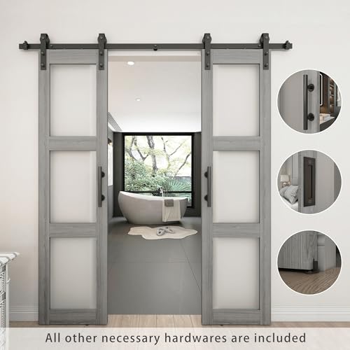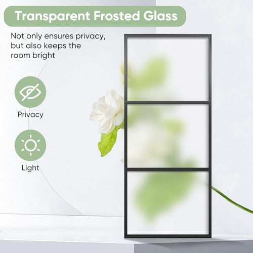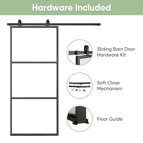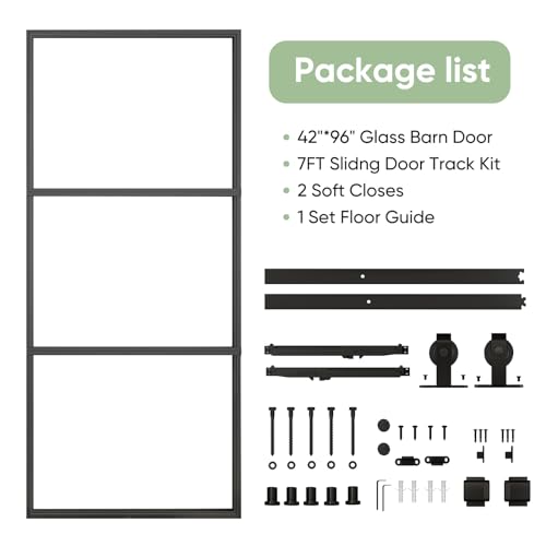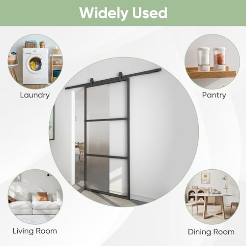 BARNSMITH 36in x 84in Frosted Glass Barn Door with 6FT Top Mounted Hardware kit Include Soft Close Mechanism Black Carbon Steel Tempered Frosted Glass Sliding Door, Assemble Required Easy Installation