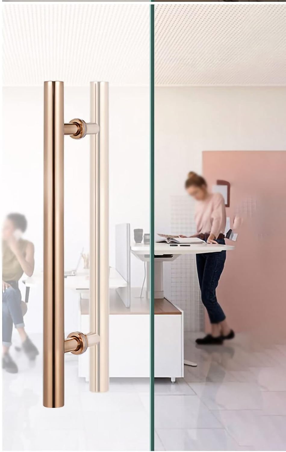 Round Stainless Steel Pull Push Door Handle with Fittings,Modern Commercial Door Handle for Sliding Barn Door Shower Door Glass Door Wooden Door,3 Colors (Color : Rose Gold,Size :