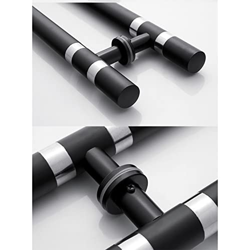 Round Stainless Steel Pull Push Door Handle with Fittings,Modern Commercial Door Handle for Sliding Barn Door Shower Door Glass Door Wooden Door,3 Colors (Color : Black Titanium,Si