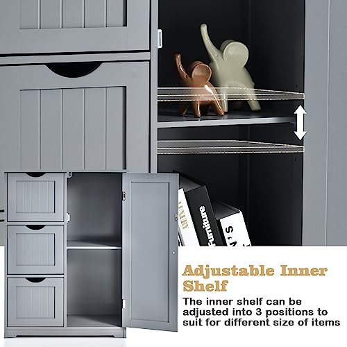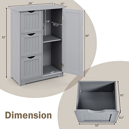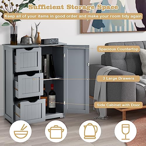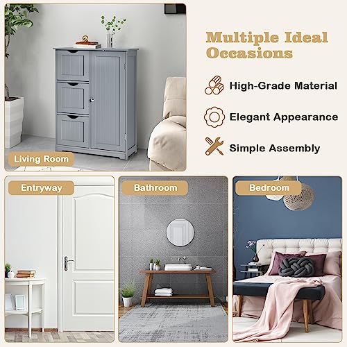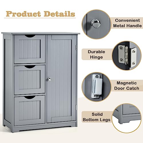 Bathroom Storage Cabinet, Wooden Bathroom Floor Cabinet w/Adjustable Shelf, 3 Drawers & 1 Door, Bathroom Cabinets Freestanding for Living Room, Entryway & Kitchen