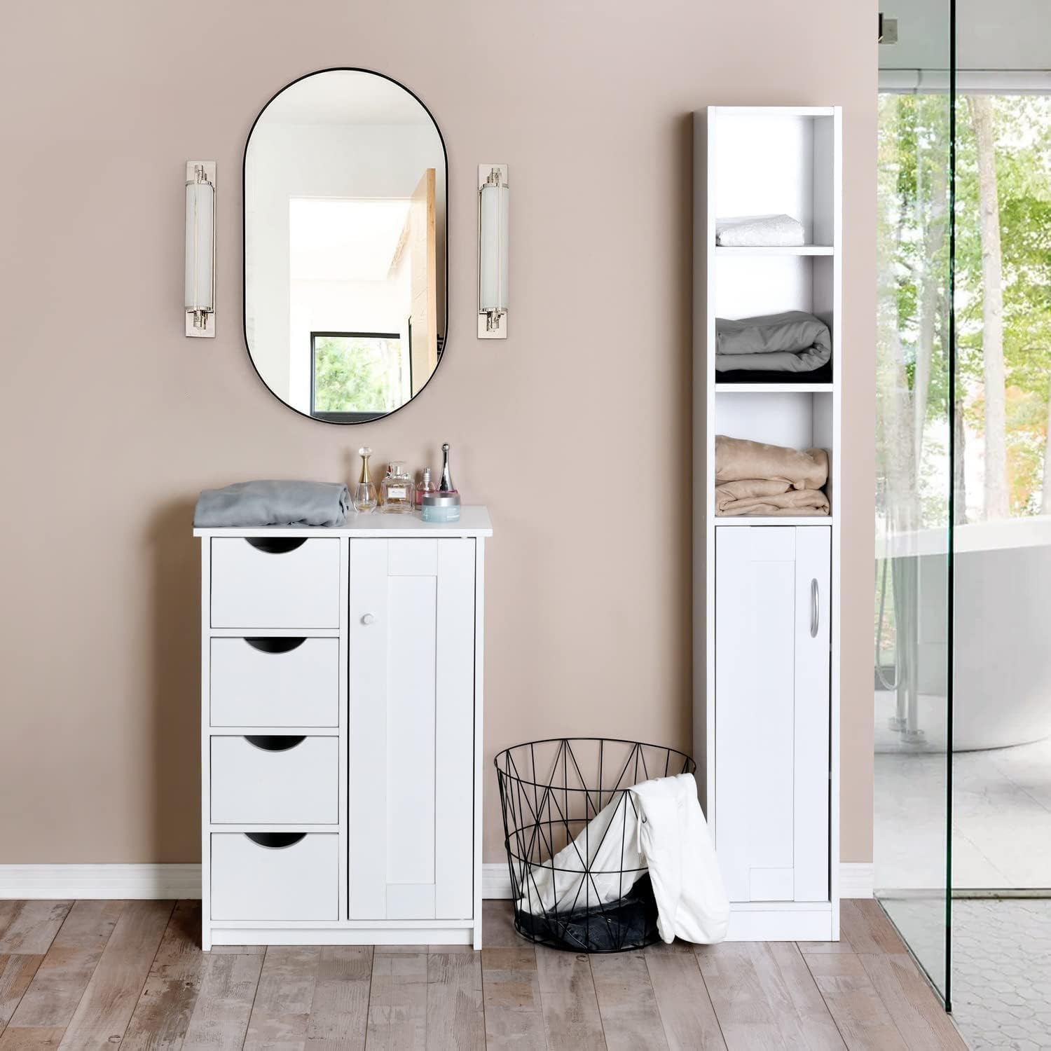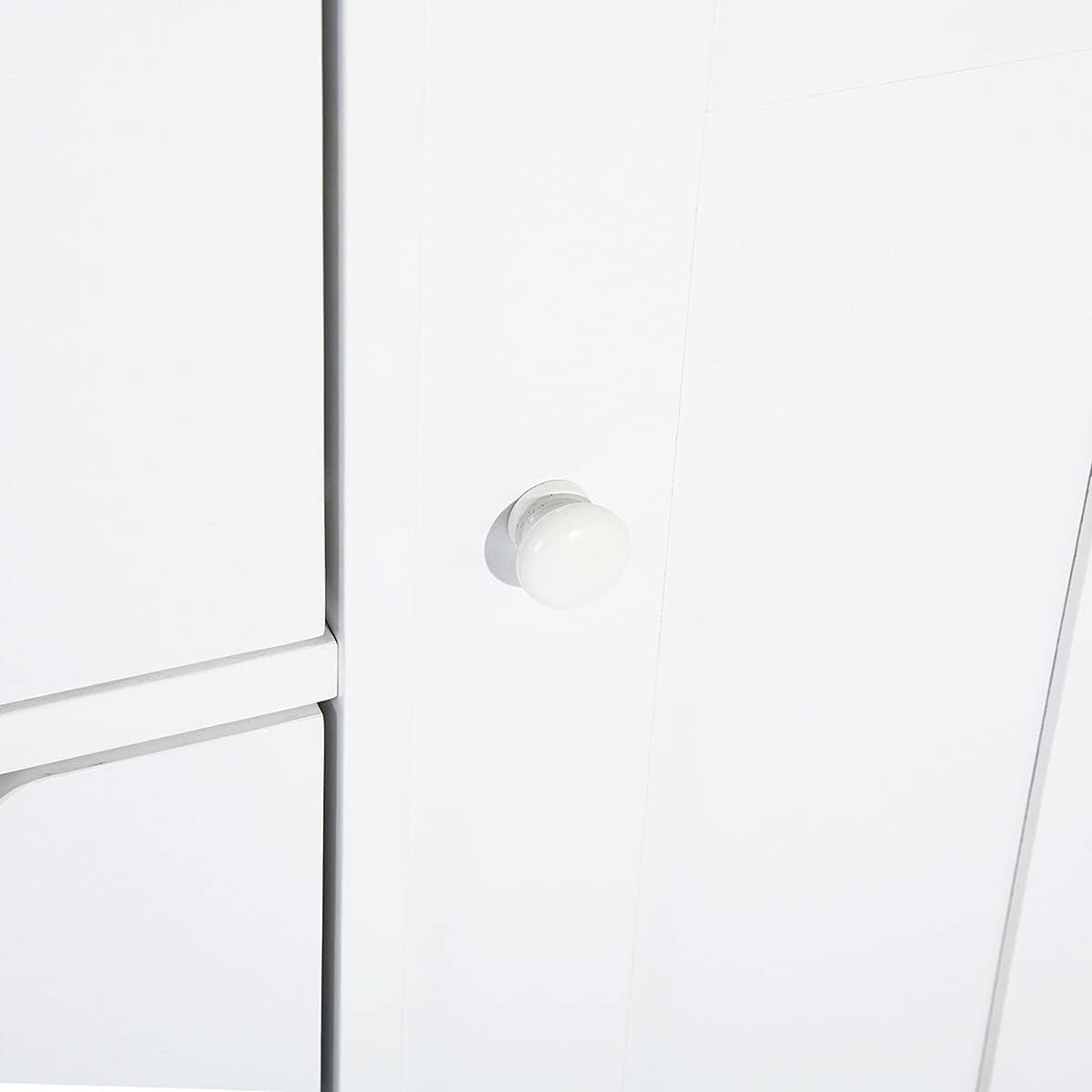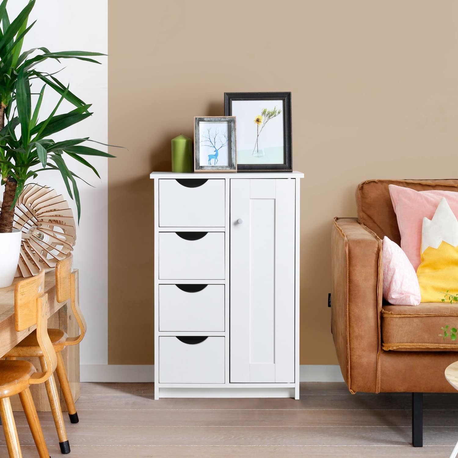 FurnitureR Free-Standing Entryway Unit Console Table, Cupboard for Kitchen/Living Room/Bathroom Floor Cabinet Wooden Storage Organizer with 1 Door and 4 Drawers, Small, White