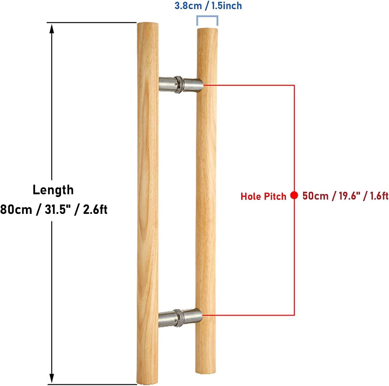 Sliding Barn Door Handle Wooden,Push Pull Door Handle for Entry Interior & Exterior Glass Gates,Double Sided H Shape Round Bar (Color : Gray,Size : 80cm/2.6ft)