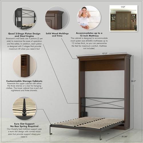 Coventry Queen Murphy Bed with 2 Storage Cabinets | Engineered and Solid Wood Construction - No Melamine Used | Walnut Stained Birch Veneer Finish | Queen Size Murphy Cabinet Bed