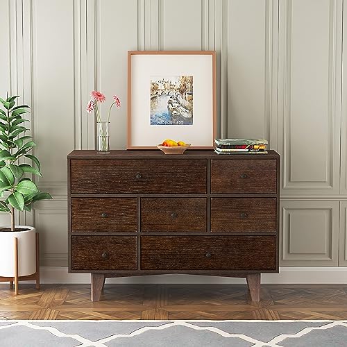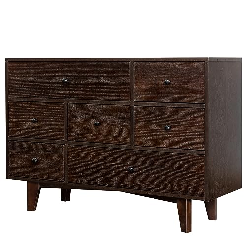 47" Sideboard Buffet Cabinet with 7 Drawers, Birch Wood, Retro Design, Adjustable Shelves, Sturdy and Stable, Kitchen Storage Cabinet for Living Room, Dining Room, Easy Assembly