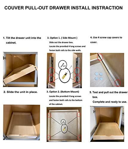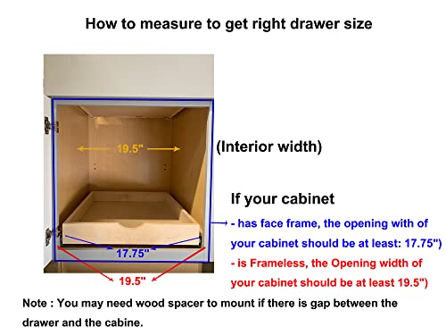 Pull Out Tray Bottom Mount Side Mount Birch Cabinet Drawer Slide Out Shelves Roll Out Cabinet Organizer 22.5"(W) x 21.25"(D) X 4"(H), Soft-Close Rail with Spacer