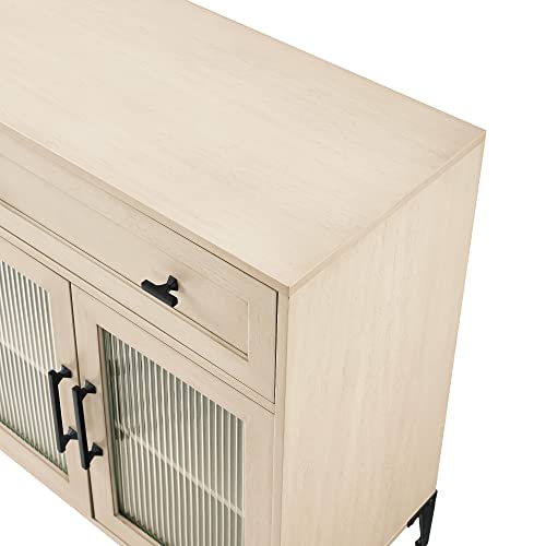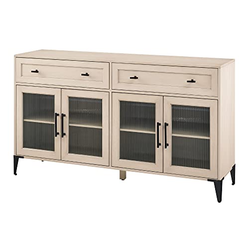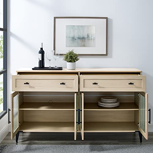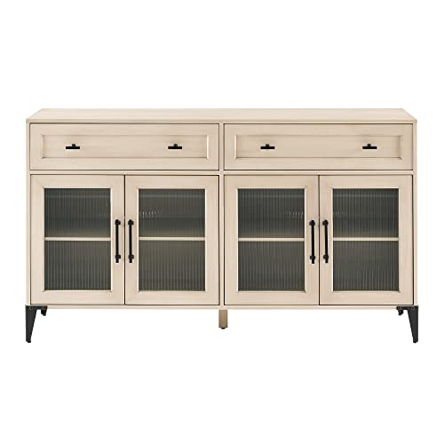 Walker Edison Kaya Contemporary Fluted Glass-Door Sideboard, 58 Inch, Birch