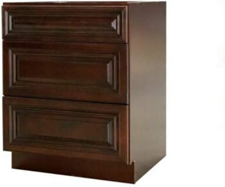 Espresso 24 inch Kitchen Traditional 3 Drawers Cabinet Base Wall Birch Solid Wood Hardwood Plywood 24" Wide x 34 1/2" High x 24" Deep of Set