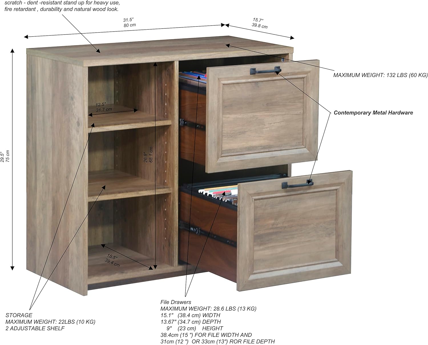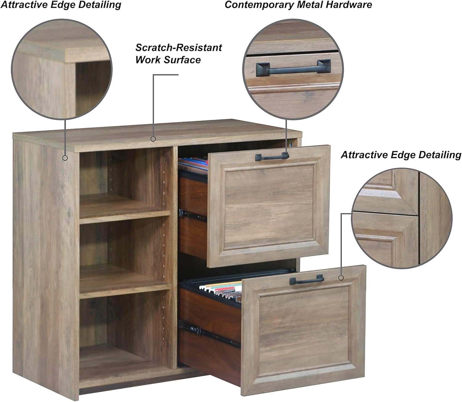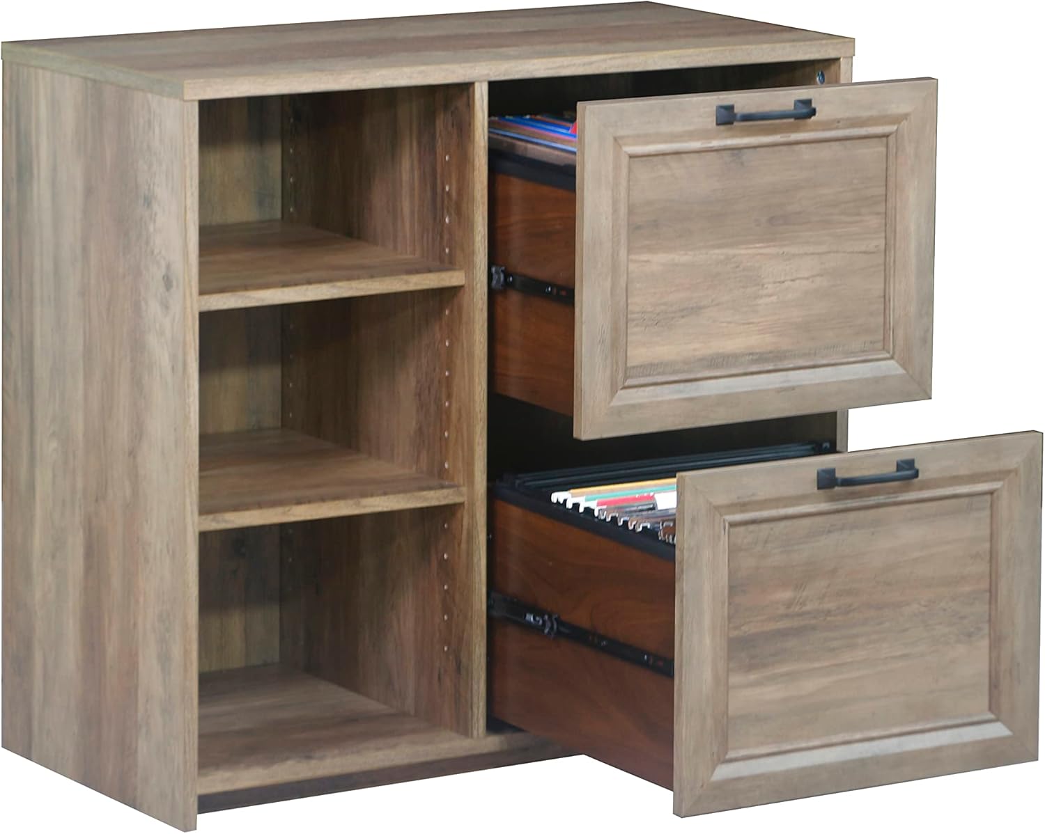 Alaska Wood 2 Drawer File Cabinet with 3 Shelf in Oak