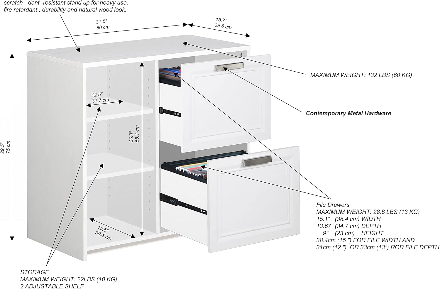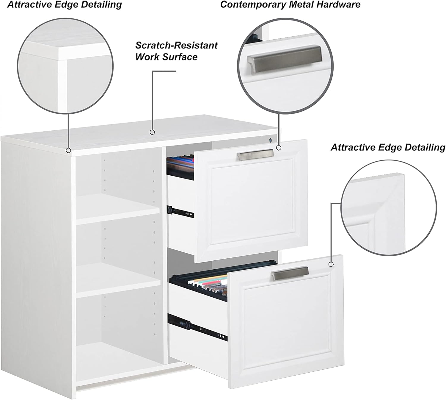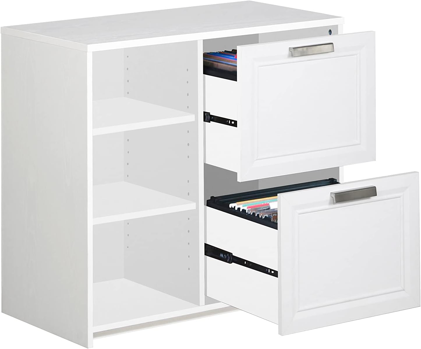 Alaska Wood 2 Drawer File Cabinet with 3 Shelf in White