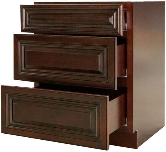 Espresso 15 inch Kitchen Traditional 3 Drawers Cabinet Base Wall Birch Solid Wood Hardwood Plywood 15" Wide x 34 1/2" High x 24" Deep of Set