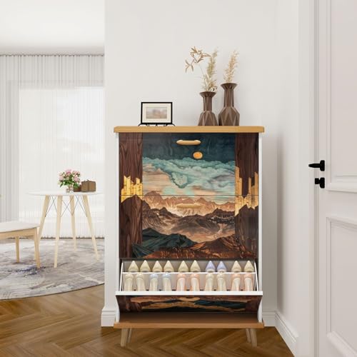 3 Drawer Shoe Cabinet, Artistic Shoe Cabinet, Calm Palette Mid Century Aesthetic Birch Wood Art Wood Shoe Rack Organizer for Entryway Slim (31.5”W x 9.45”D 46”H)