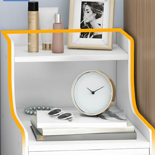 LITFAD Wood Small Nightstand Narrow End Table Modern Side Table with Open Storage and Drawers for Small Spaces Bed Side Table for Bedroom, Living Room-White, 12" L x 12" W x 27.5" H
