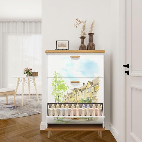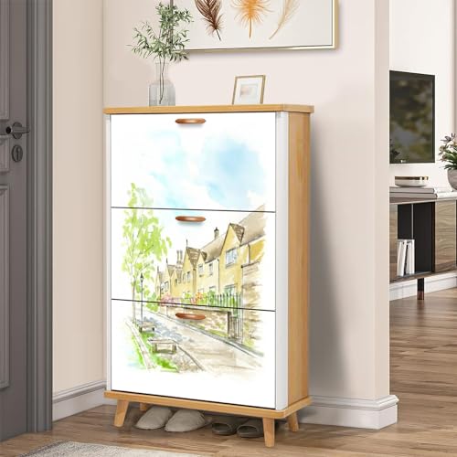 3 Drawer Shoe Cabinet, Artistic Shoe Cabinet, Birch Behind Fence Wood Shoe Rack Organizer for Entryway Slim (31.5”W x 9.45”D 46”H)