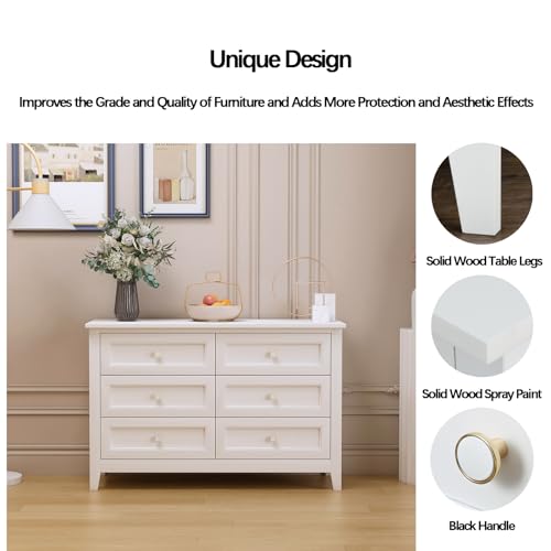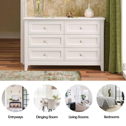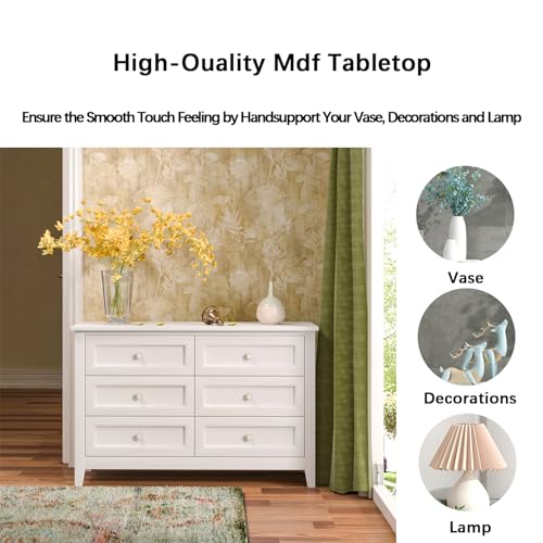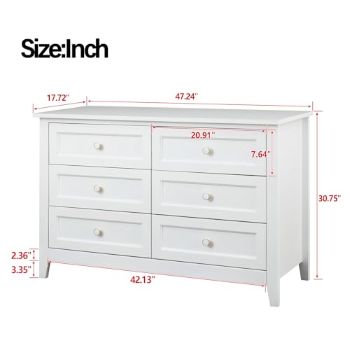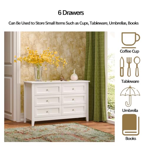 6 Drawers Chest, Solid Wood Dresser for Bedroom, Mid-Century Modern Freestanding Storage Cabinet, Chest of 2 Small & 4 Large Drawers w/Smooth Gliding Rails, Seashell Shaped Handles for Living Room