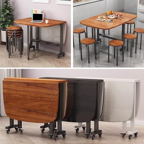 Multifunctional Folding Dining Table, Small Spaces Kitchens Table with Wheels - Extendable Butterfly, Easiest to Assemble Sewing Table(Brown,100x60x75cm)