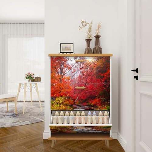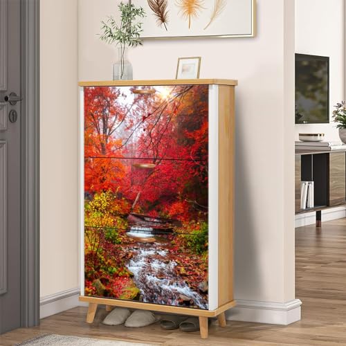 3 Drawer Shoe Cabinet, Artistic Shoe Cabinet, Birch Trees bark Birch Grove Autumn Wood Shoe Rack Organizer for Entryway Slim (31.5”W x 9.45”D 46”H)