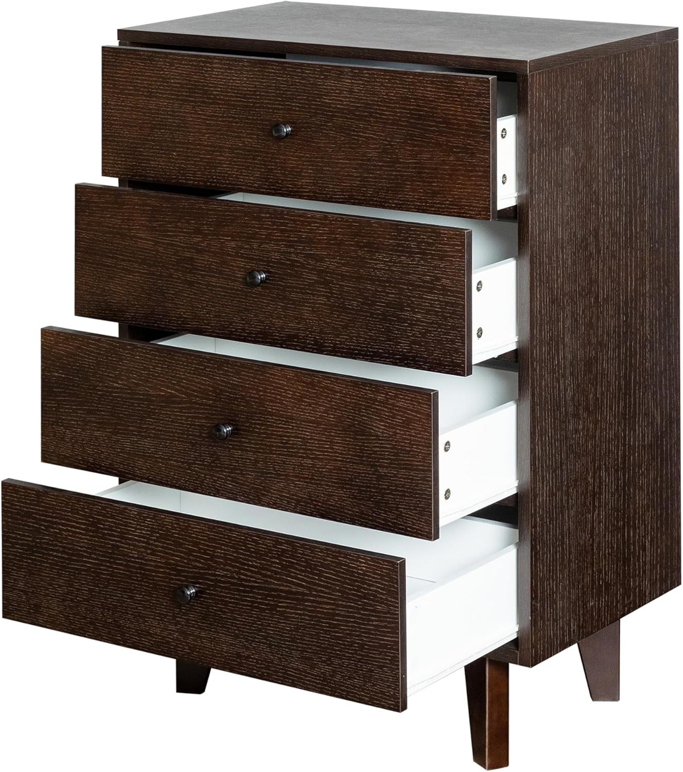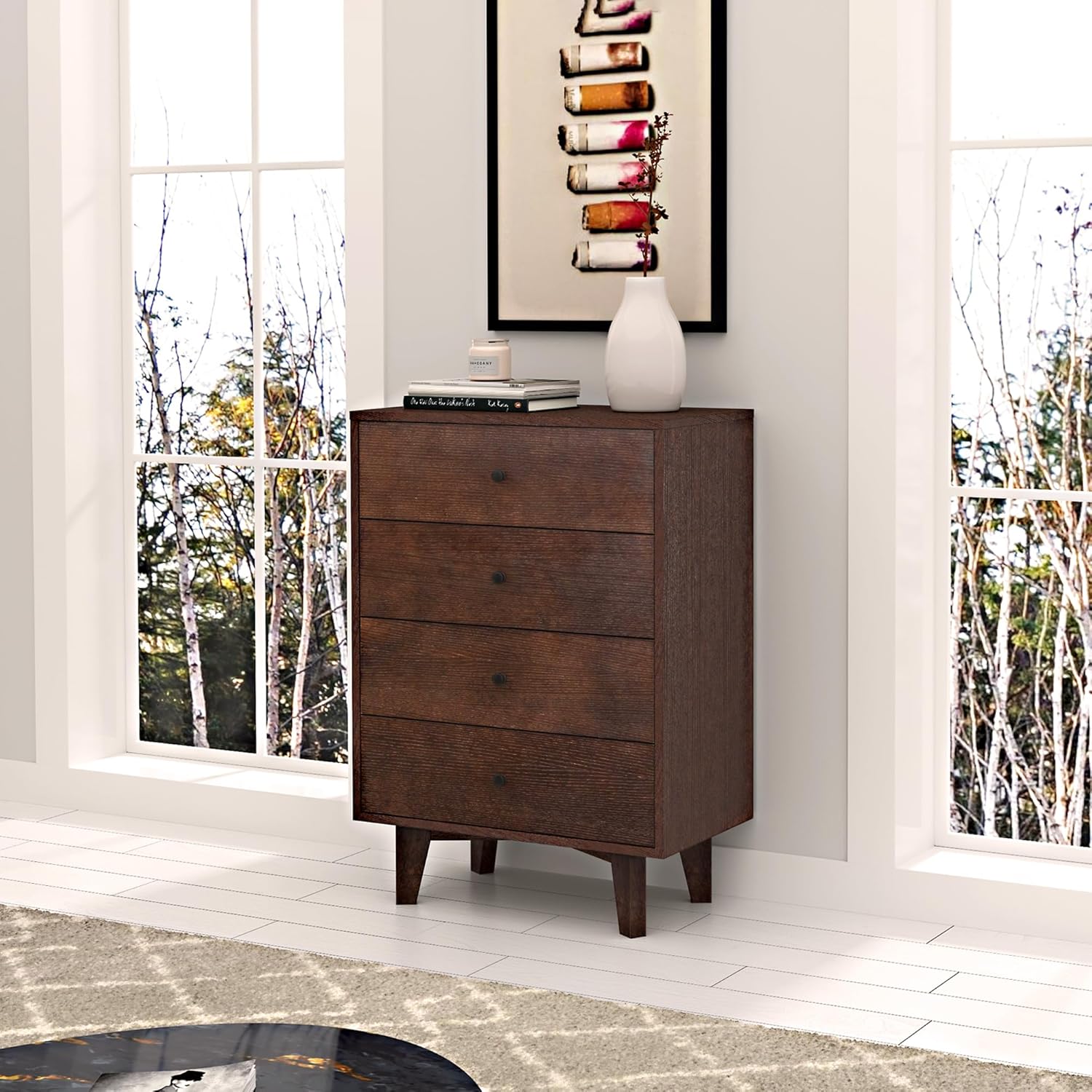 Vintage Wooden Chest of Drawers, 4 Drawer Storage Cabinet, Solid Wood Painted, with Vintage Round Handles and Birch Legs, Suitable for Living Room, Bedroom, Apartment, Auburn