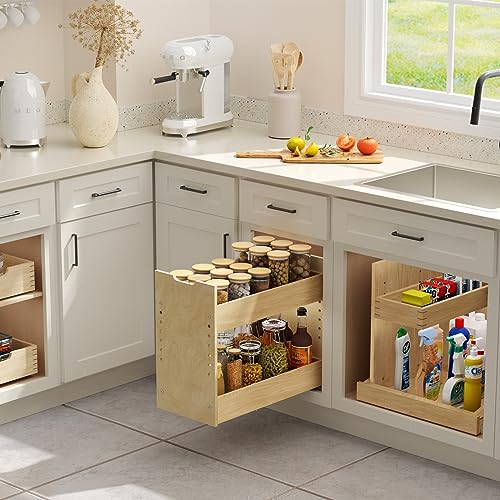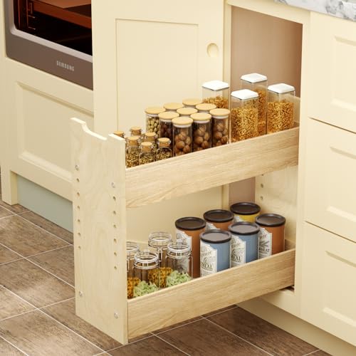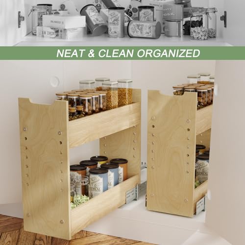 LOVMOR Adjustable Pull Out Cabinet Organizer 7½” W x 18½”H 2-Tier Narrow Cabinet Drawers Slide Out with Soft Close Wood Spice Rack for Narrow Cabinet