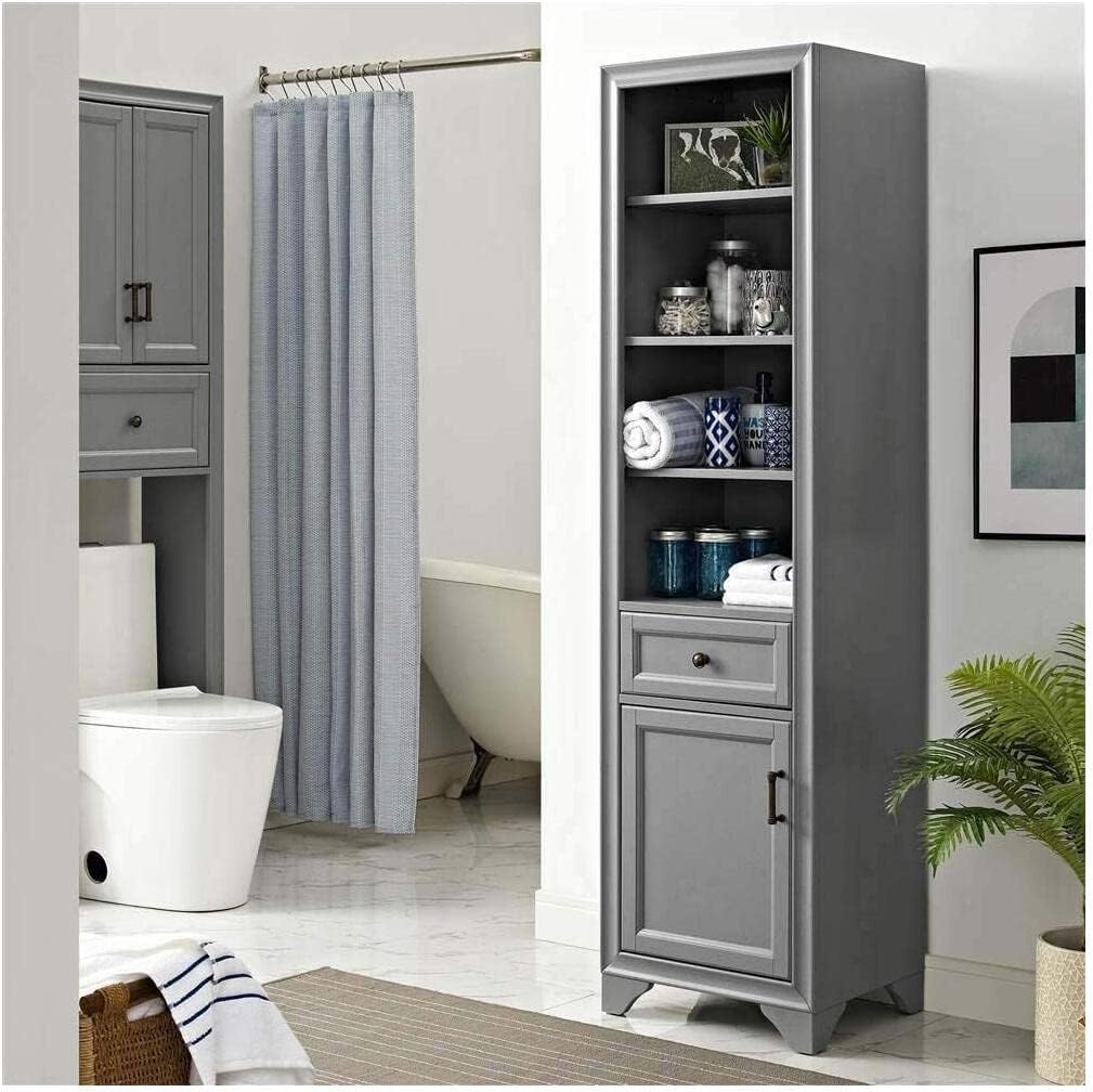 Coastal Cool Wood Classic Home Storage Tall Linen Cabinet in Vintage Gray, 3 Open Shelves, 1 Drawer, 1 Storage Cabinet, 15" D x 18" W x 67.62" H