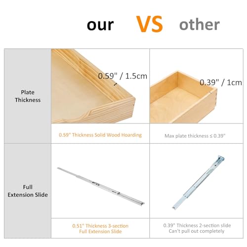 14.1" W x 21" D x 3" H Pull Out Cabinet Organizer with 3-section Full-extension Slides Pull Out Drawers 0.59" Solid Wood Thickness Pull-out Basket Pull Out Shelf for Kitchen Cabinet Pantry