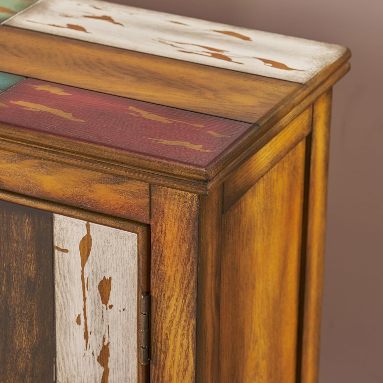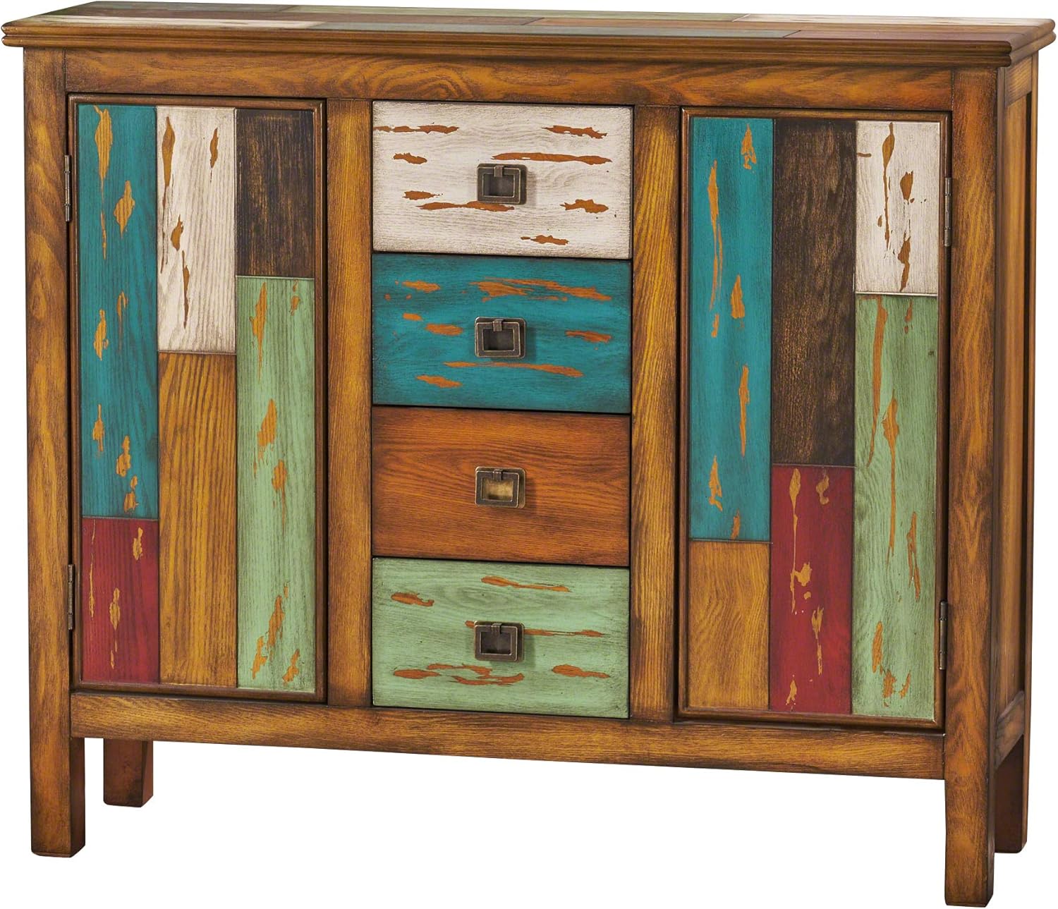 4 Drawer 2 Door Storage Cabinet with Antique Distressed Design, Elegant Antique Brass Handles, Sturdy Birch Wood Legs for Entrance Living Room Dining Room Kitchen