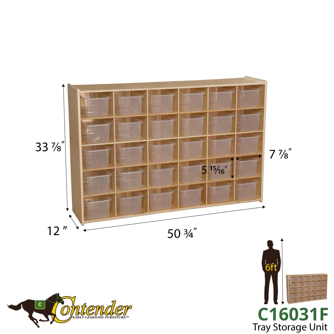 Contender Natural Birch Cubby Storage Cabinet with 30 Translucent Trays, Ideal for Classroom, Preschool, Home-school, Made in USA [Comes Fully Assembled]