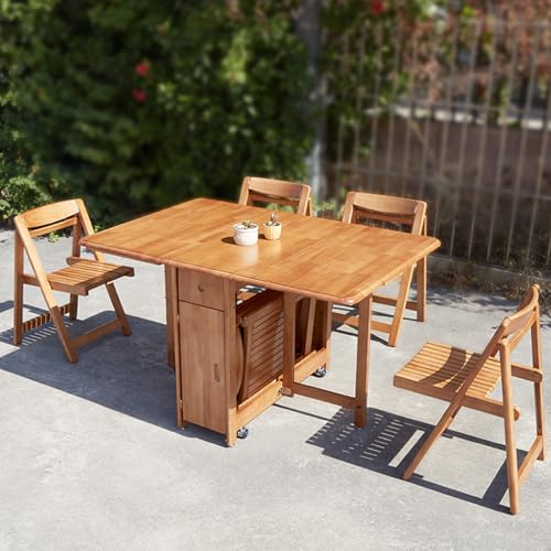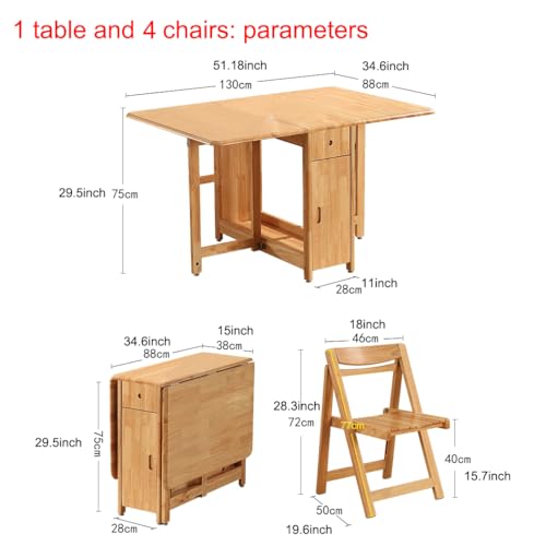 Folding Dining Table Set for 4, Wooden Extendable Dining Table with Chairs - Perfect for Kitchen Dining Room Living Room - Space Saving Furniture