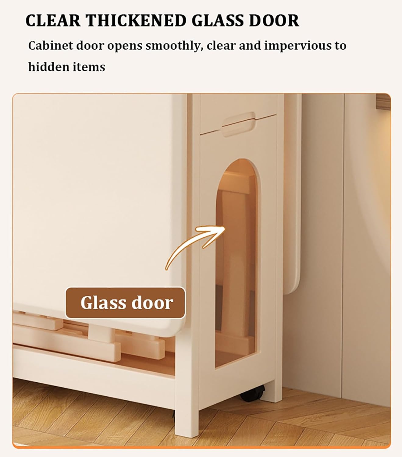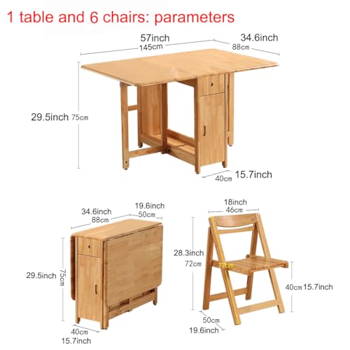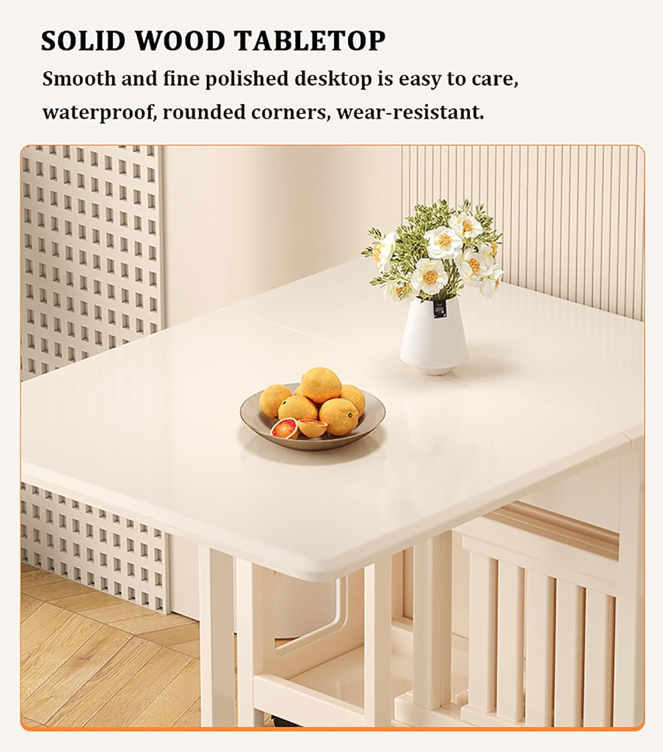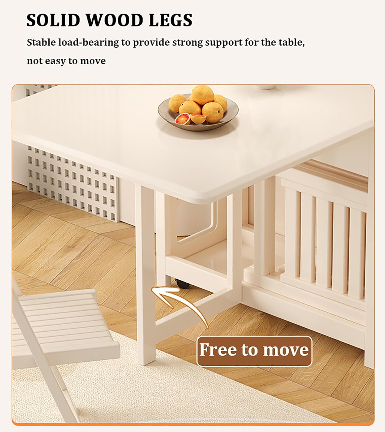 Folding Dining Table with Chairs Rack and 1 Storage Drawers, Movable Extendable Space Saving Table, 4 Universal Wheels, for Dining Room, Kitchen, Living Room