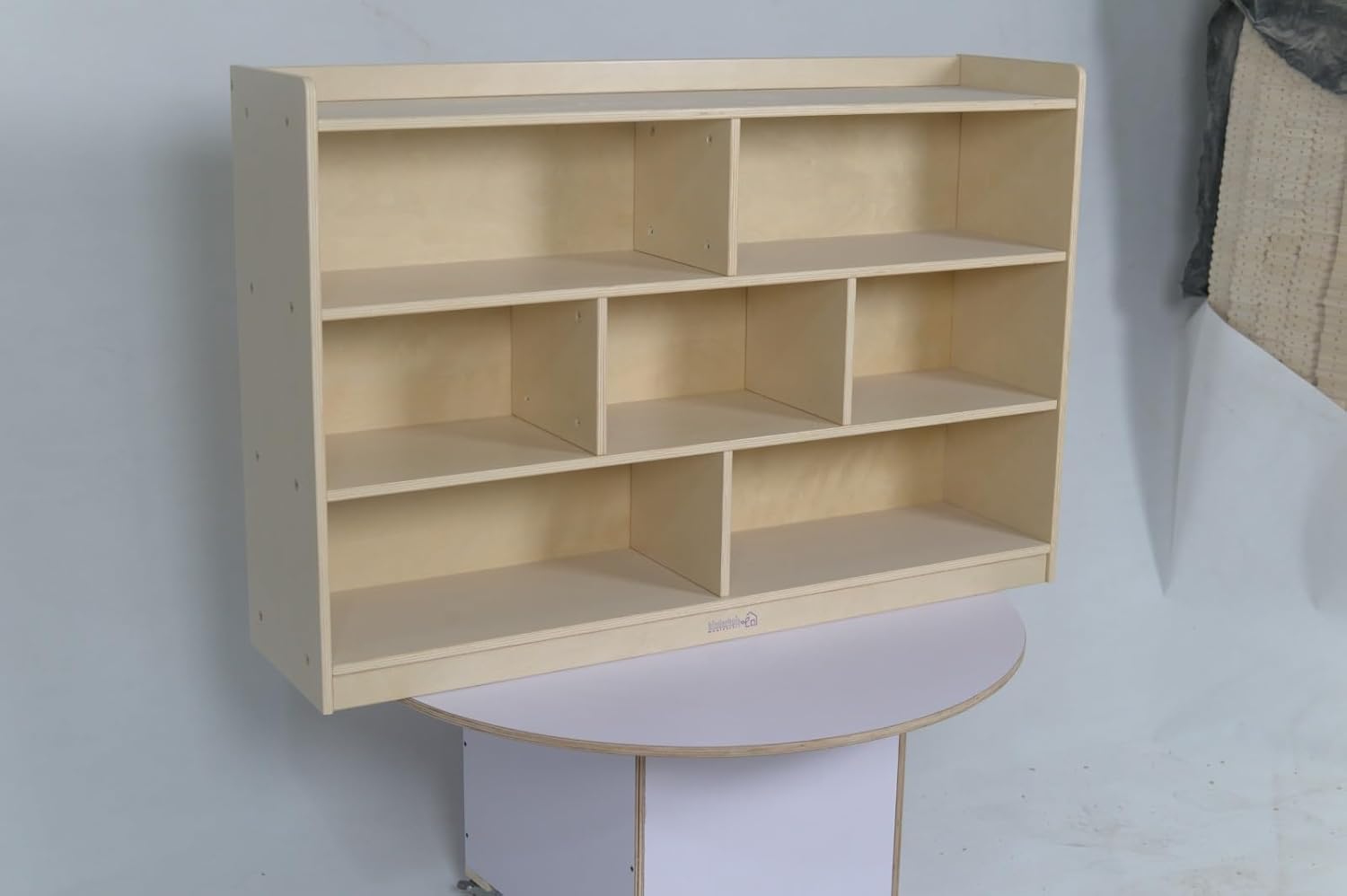 Kinderhuis-Birch Wood Multi Storage Montessori Toy Shelf 8-Compartment Mobile Storage Cabinet, 47in, Classroom Furniture, Natural